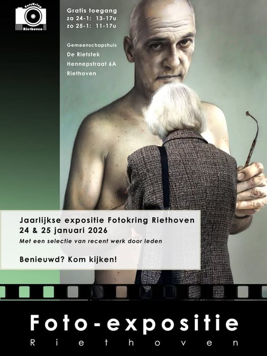 Fotokring Riethoven houdt weer een foto-expositie in De Rietstek (Hennepstraat 6a, Riethoven) op zaterdag 24 en zondag 25 januari 2026, waar leden hun werk tonen, inclusief het thema 'Nederlandse volksliedjes', met gratis toegang en gezellige koffie.